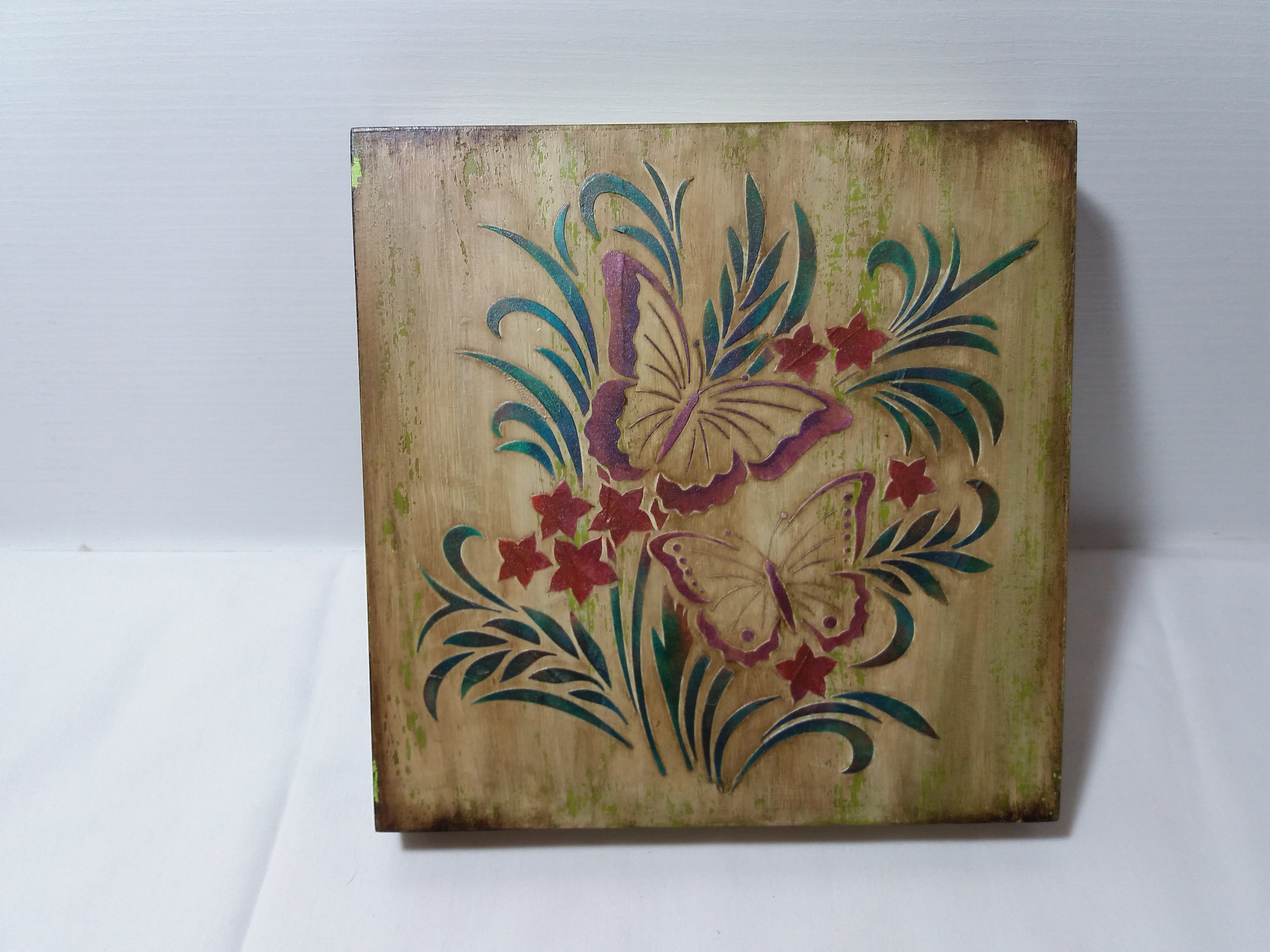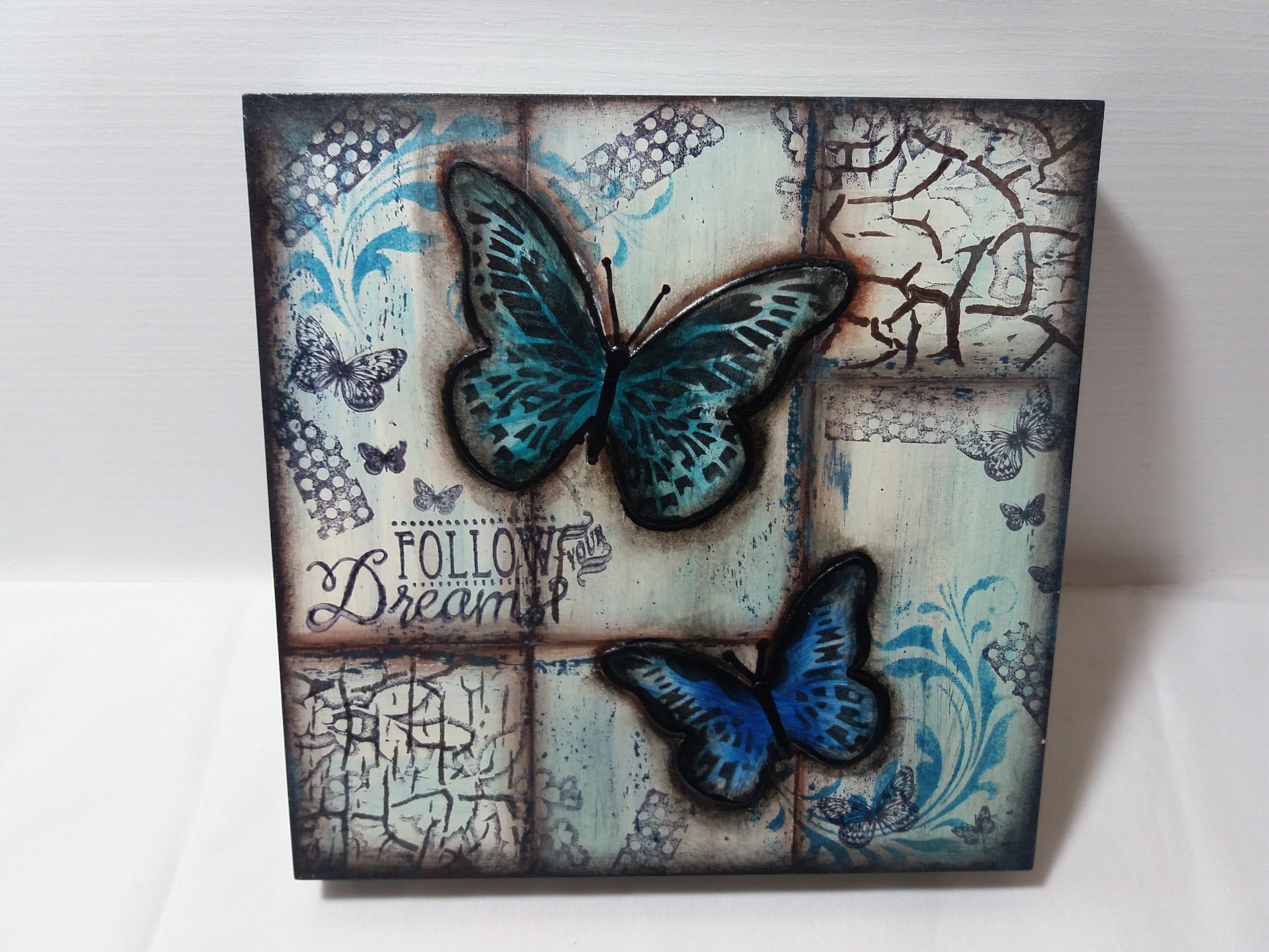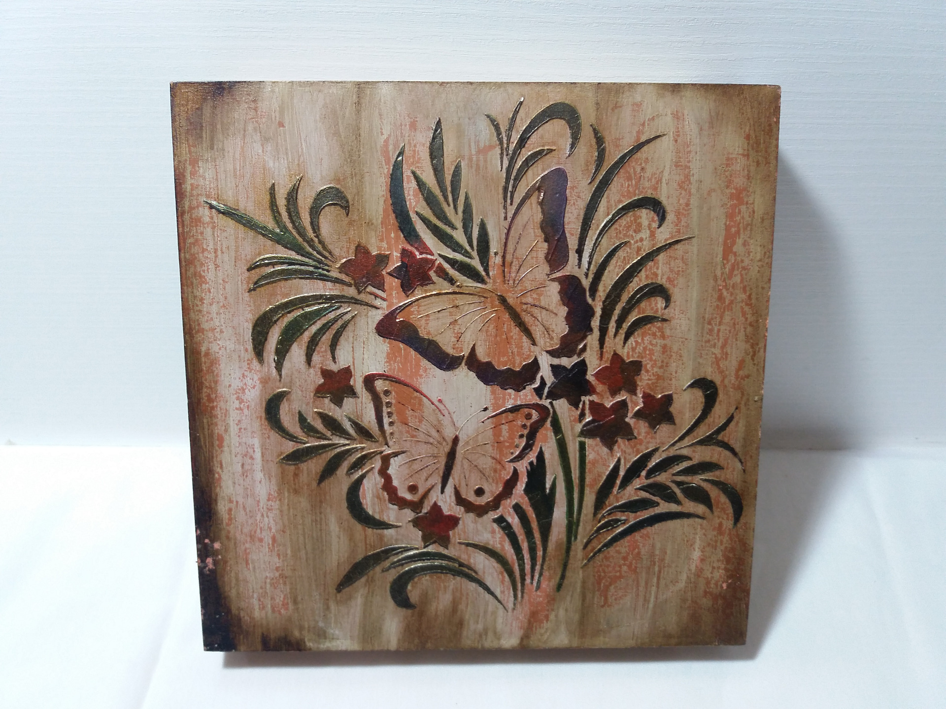 Cuadros en madera envejida, lacados, recinados (solo el de la primera imagen es con servilleta).