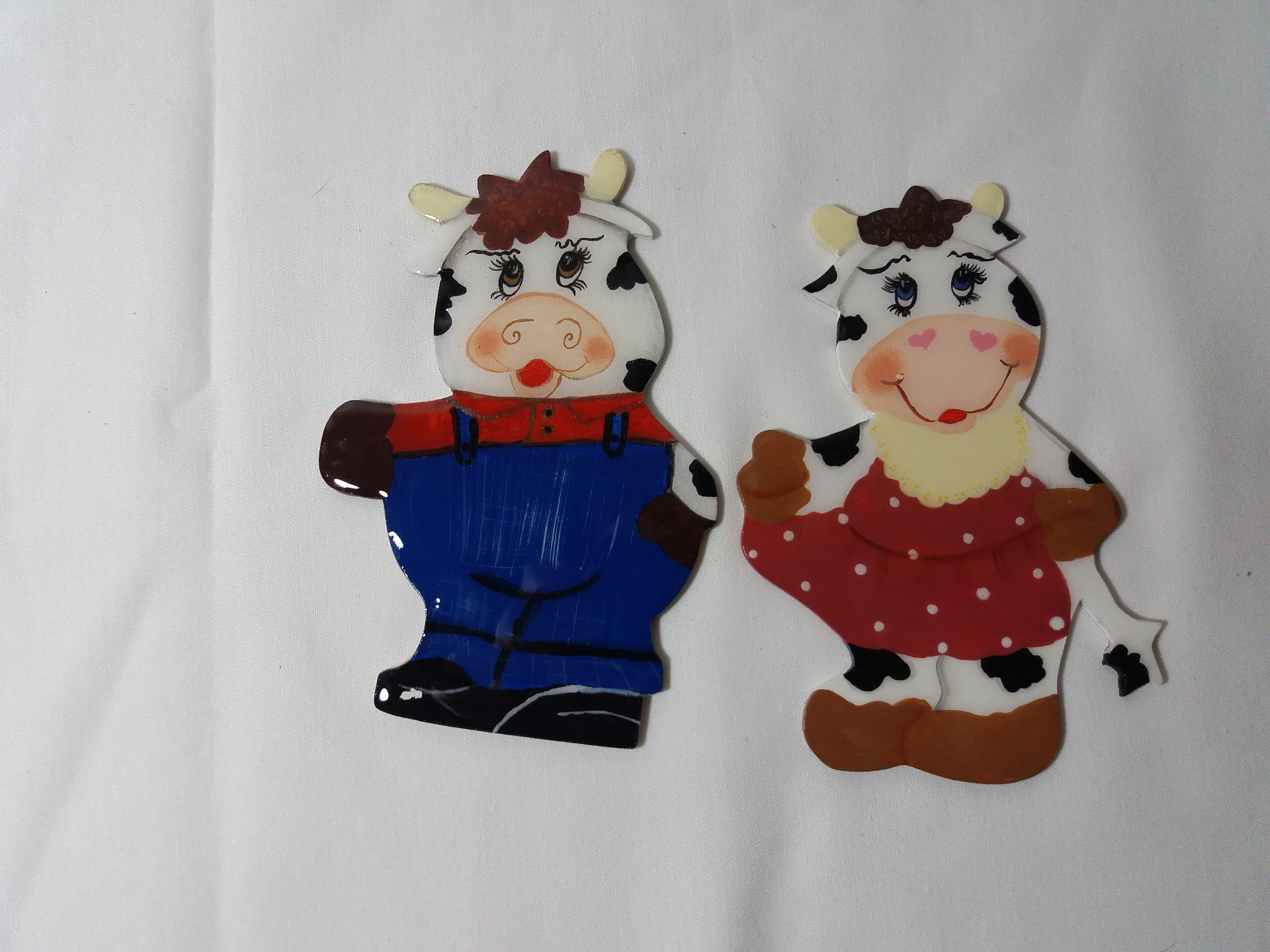 Unas figuras para la refrigeradora, hechas madera y resinadas. Se incluye el par.
